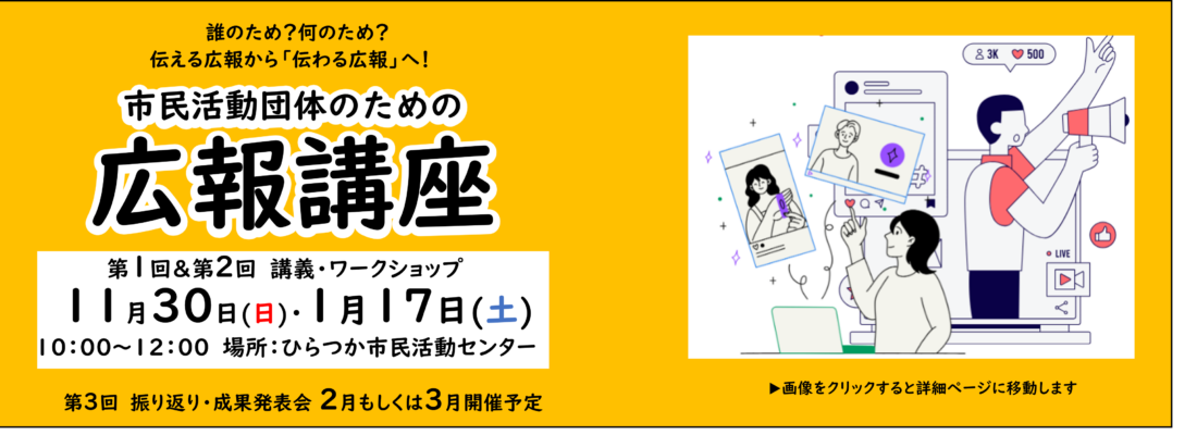 日程変更⇒【11/30・1/17・2~3月 (連続3回)】市民活動団体のための広報講座