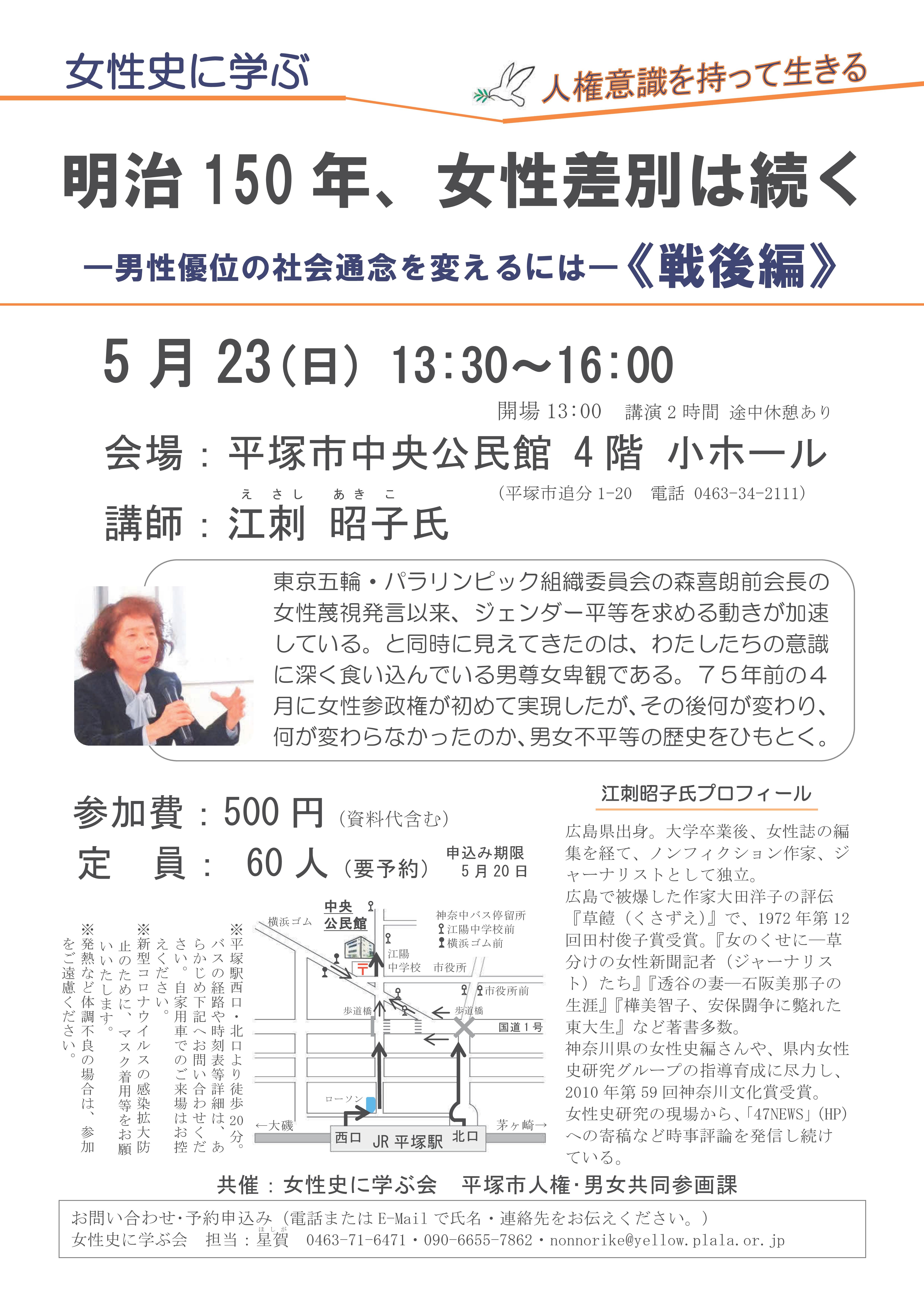 江刺昭子氏講演会チラシ(女性史に学ぶ会)20210426