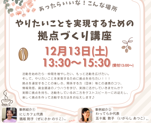 あったらいいな!こんな場所「やりたいことを実現するための拠点づくり講座」 開催報告(2025/12/13実施)