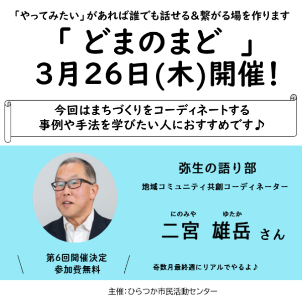 何かやりたい人の掘り起こしとつながりの場 「どまのまど~弥生の会~」開催報告(2026/3/26実施)