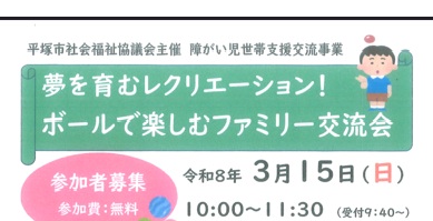 湘南ベルマーレのスタッフやプロバスケットボールチームの選手らと一緒に交流しながら楽しむレクリエーションです。 ▼日時 3月15日(日) 10:00~11:30 ▼会場 ひらつかサンライフ・アリーナ ▼...