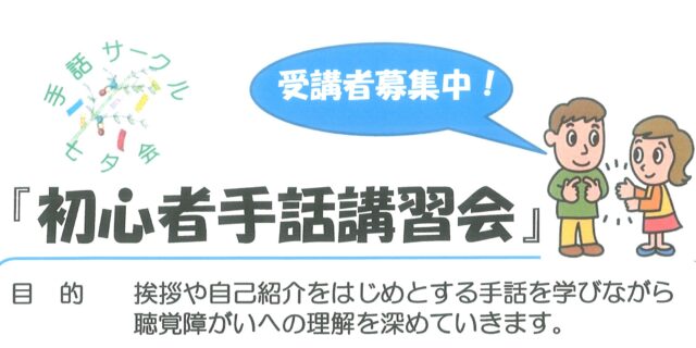 ▼日時 2月24日 3月 3日、10日、17日、24日 毎週火曜日 10:00~12:00 全5回 ▼対象 市内在住・在勤・在学で初めて手話を学び、4回以上参加できる方 ▼場所 平塚市福祉会館2F 第...