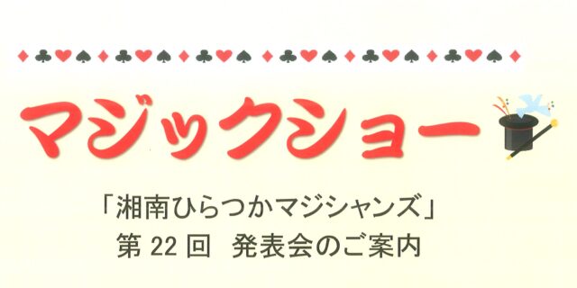 湘南平塚マジシャンズ 第22回発表会 ▼日時 3月7日(土) 13時開演 ▼場所 平塚市中央公民館 大ホール ...