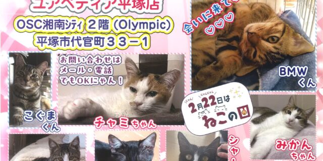 ▼日時 2月22日(日) 11:00~15:00 ▼場所 ユアペティア平塚店(OSC湘南シティ2F) 平塚のら猫を減らす会 ※参加猫はブログで紹介します ※譲渡の際、ワクチン・医療費など...