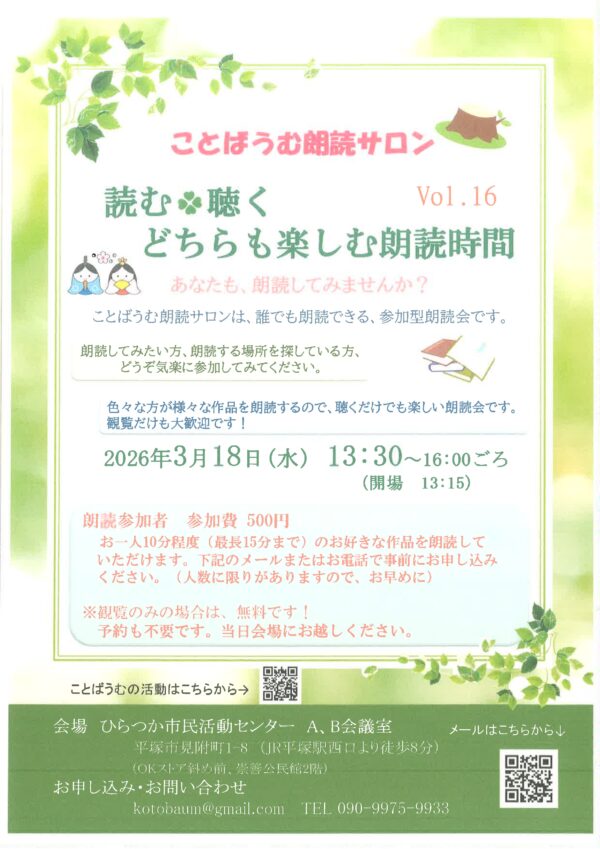 ことばうむ朗読サロンVol.16 読む🍀聴く どちらも楽しむ朗読時間