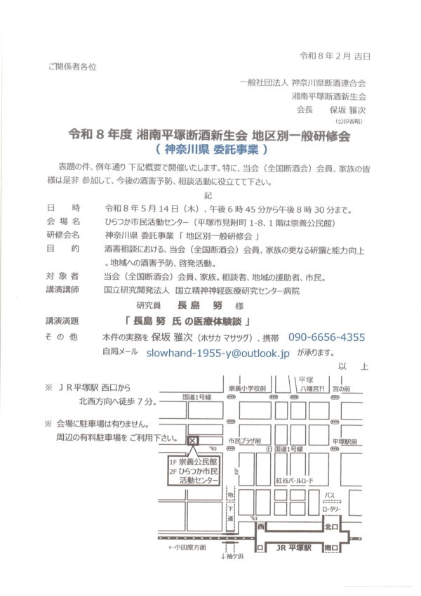 令和8年度 湘南平塚断酒新生会 地区別一般研修会
