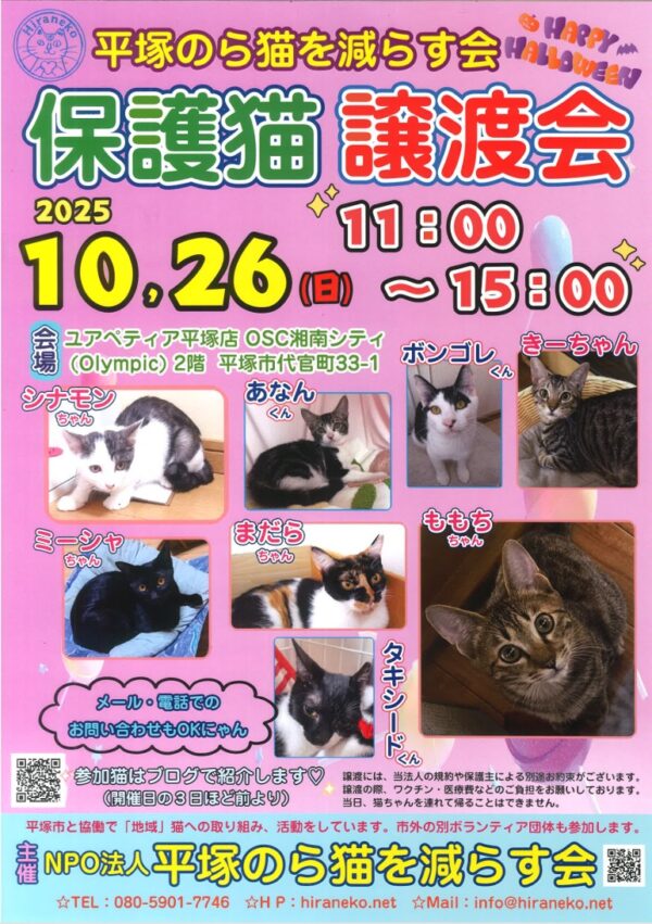 お問い合わせ NPO法人 平塚のら猫を減らす会