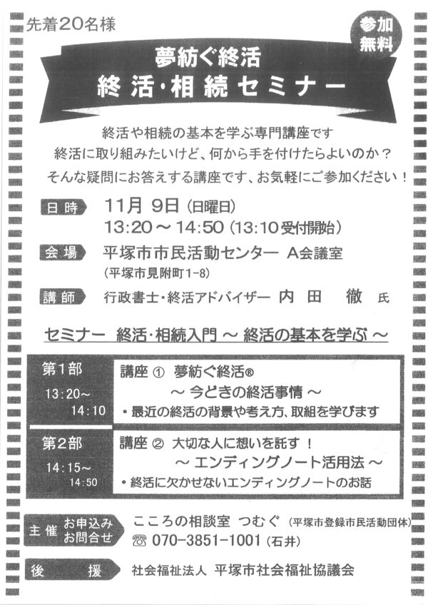 ホーム » イベント » 夢紡ぐ終活 終活・相続セミナー