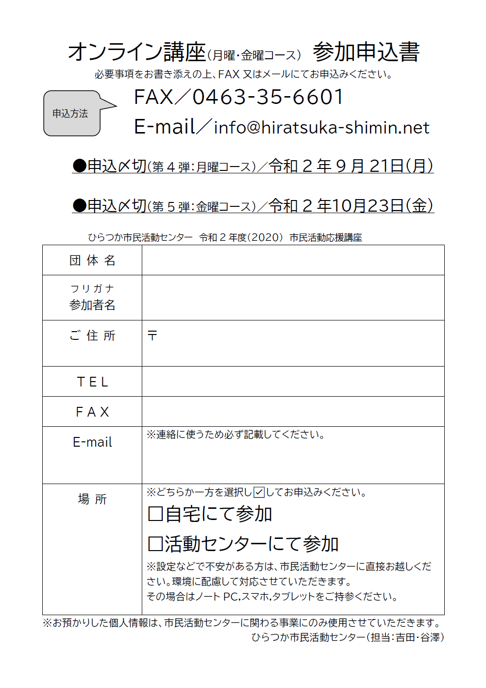 以下の申込書をダウンロードしていただき、必要事項をお書き添えの上