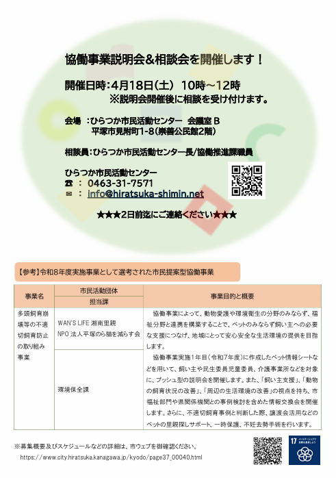 【3/13~】令和9年度実施 平塚市『市民提案型協働事業』提案募集(締切5/15)