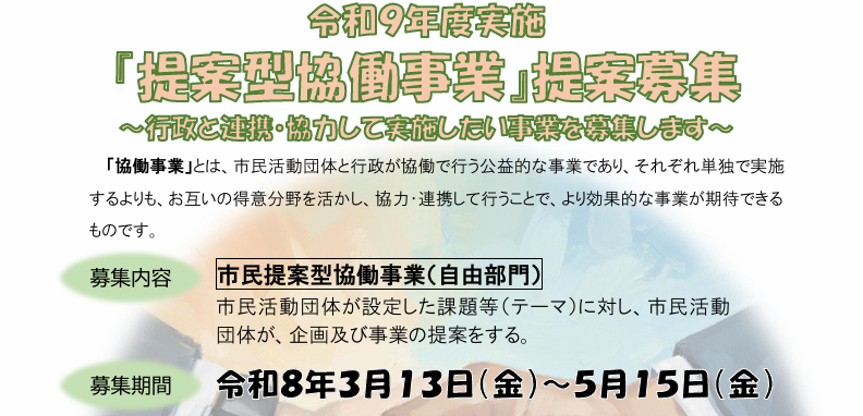 【3/13~】令和9年度実施 平塚市『市民提案型協働事業』提案募集(締切5/15)