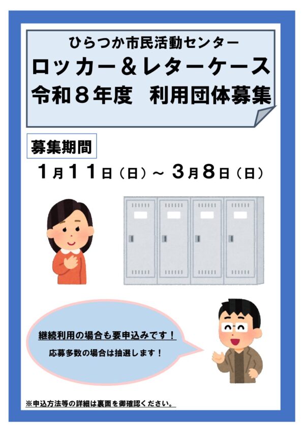 【3/8締切】令和8年度ロッカー&レターケース利用団体募集