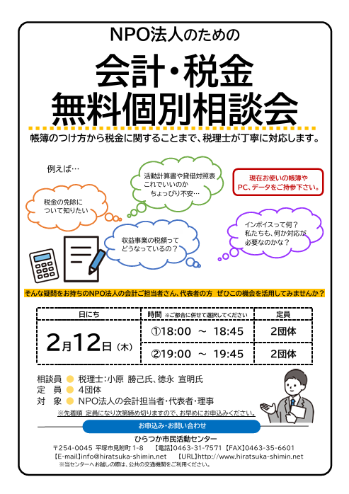 NPO法人向け 会計・税金無料個別相談会