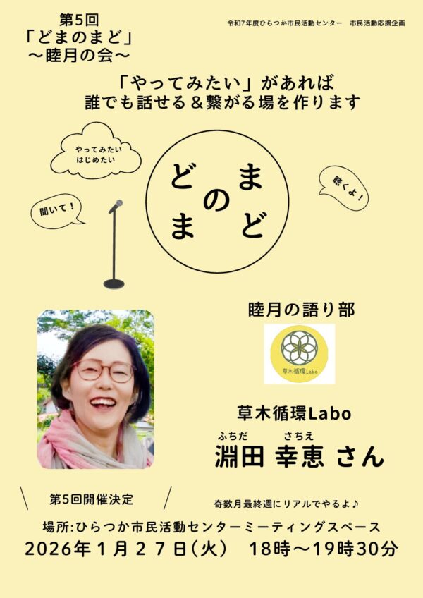 【★2026/1/27開催★】 何かやりたい人が話す場とつながりの会 「どまのまど~睦月の会~」