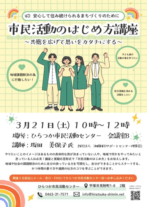 【3/21(土)】「市民活動のはじめ方講座 ~共感を広げて思いをカタチにする~」