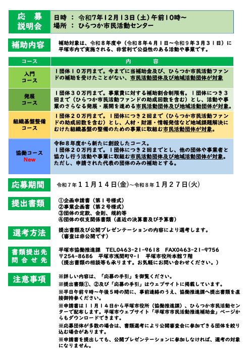 令和8年度 市民活動推進補助金 募集要項 | 平塚市