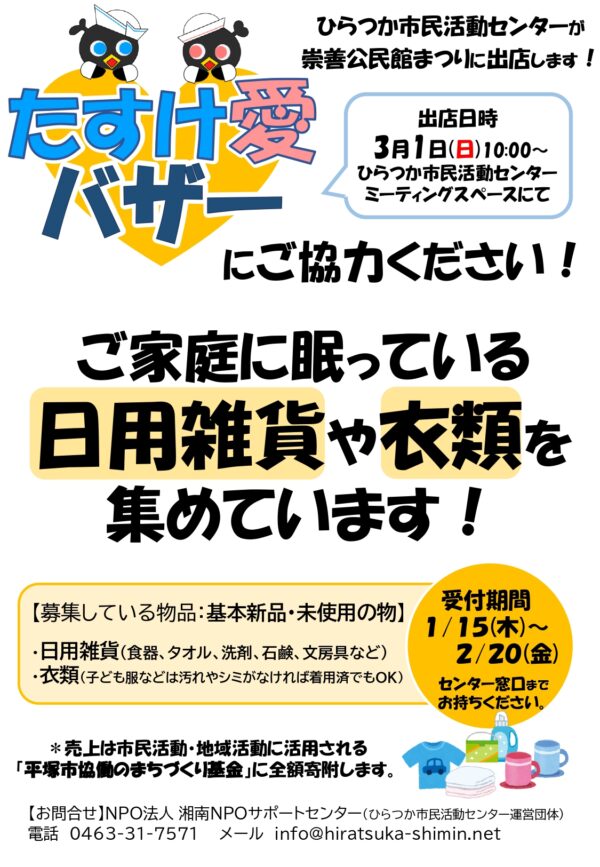 崇善公民館まつり出店企画「たすけ愛バザー」寄附募集