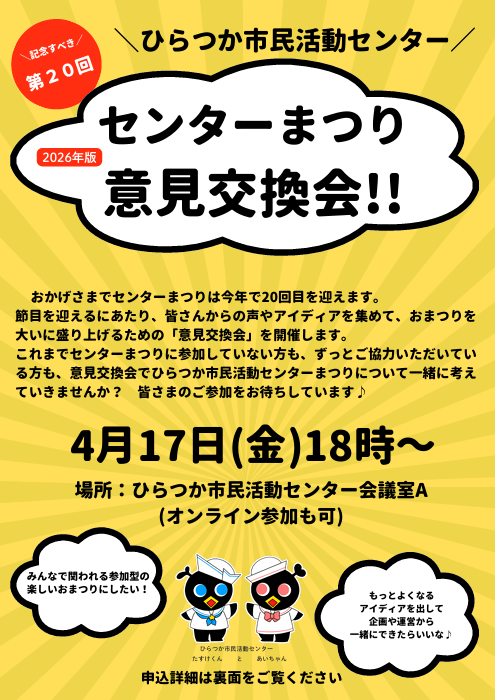 【4/17開催決定】センターまつり意見交換会 参加者大募集!!